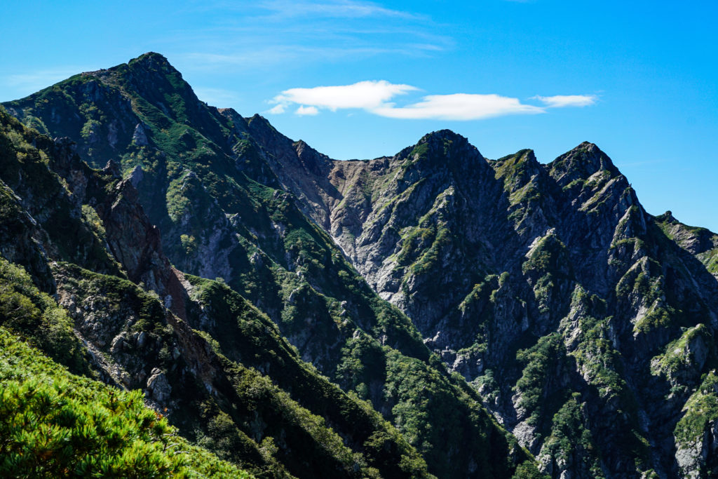 左から白馬鑓ヶ岳 2903m・杓子岳 2812m・白馬岳 2932m